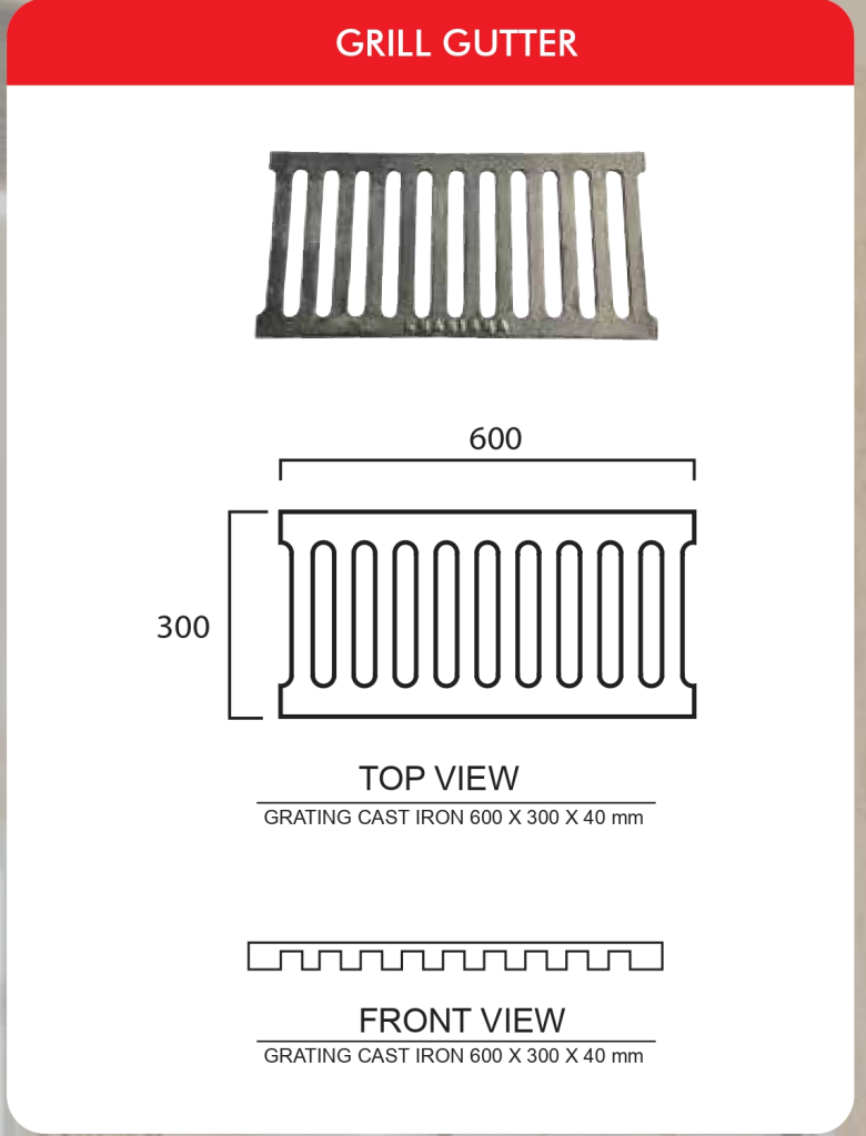 Our standard product of Grill Gutter is made from cast iron material, if costumer want request Grill Gutter using other material with costume size just call us at 021-84983128